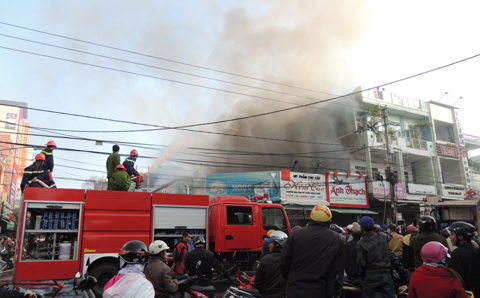 Vào lúc 6h30 ngày 2/1. Hiện trường vụ cháy. Lực lượng cảnh sát phòng cháy chữa cháy đã phải huy động 30 lượt xe với 55 cán bộ.
